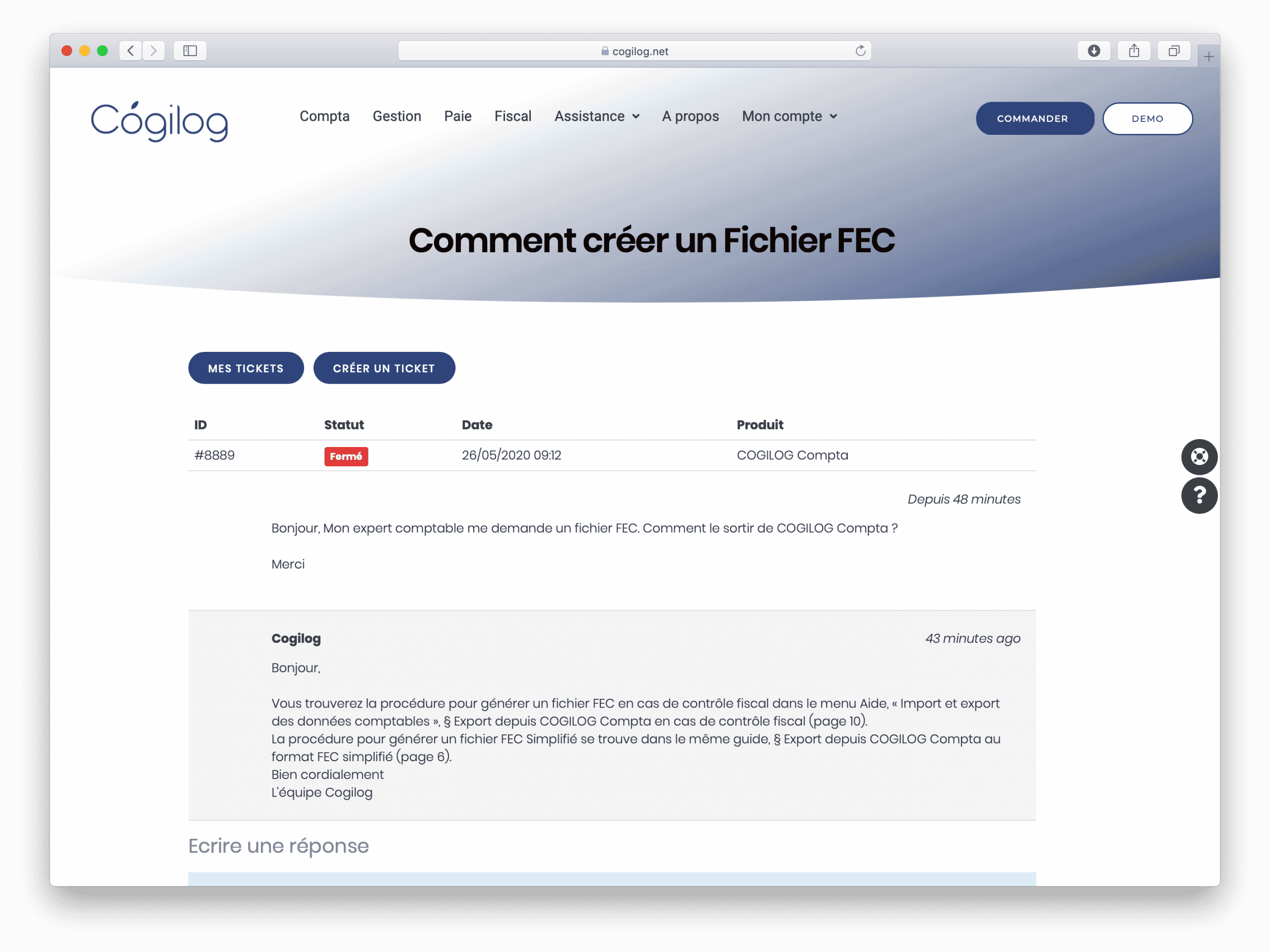 Les questions sont souvent des questions qui ont été posées par d’autres utilisateurs, toutes les réponses sont rédigées par Cogilog.